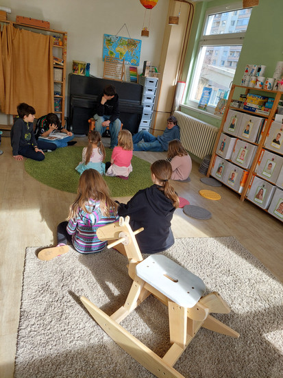 V úterý jsme si dvouhodinové ITB užili společně se sedmáky a sedmačkami. Vzali si nás pod křídlo, prováděli nás školou a četli nám. Mohli jsme se vžít do příběhu, hádat, jak bude pokračovat, a knížkami listovat. Ve druhé třídě se dokonce hrálo divadlo.