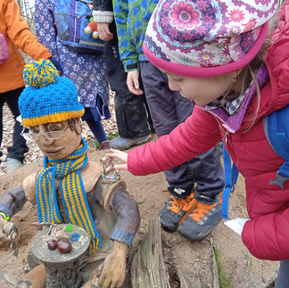 Jeden ze skřítků které velmi zaujal děti byl poslední Jeník který spinkal ve svém pařezu. Některé děti nám teď pospinkvávají v lese po různých pařezích a dělají si tam měkké postýlky.